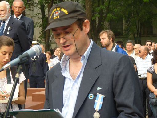 El primero en dirigir unas sentidas palabras a los presentes fue el ex soldado conscripto de Infantería de Marina Daniel Tosolini. Con su recuerdo aún fresco de la Operación Rosario destacó las acciones de las Fuerzas Especiales y de los infantes de Marina durante el desembarco; y agradeció el apoyo que recibieron a través de cartas de familiares, amigos y desconocidos cuando estaban en las islas.